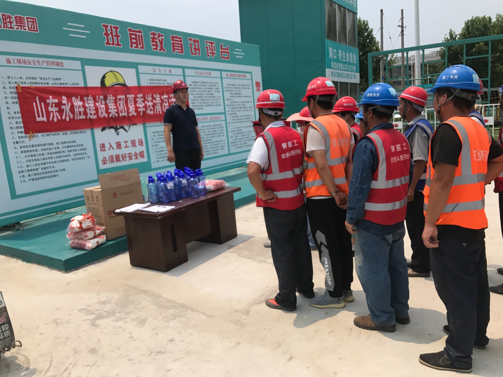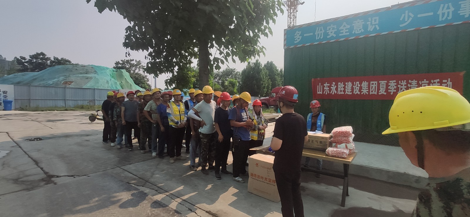 近期高温天气持续不下,为切实关怀在高温下辛苦奉献的建设者,6月22日-23日,集团办公室、施工管理部代表集团公司高管层、工会组织开展了夏季送清凉活动,为坚守在施工一线的建设者们送去了内容丰富、实用性强的防暑降温用品,亲切叮嘱大家在夏日工作中一定要注意防暑,牢记高温季节施工安全注意事项,合理安排作息时间,注重劳逸结合。