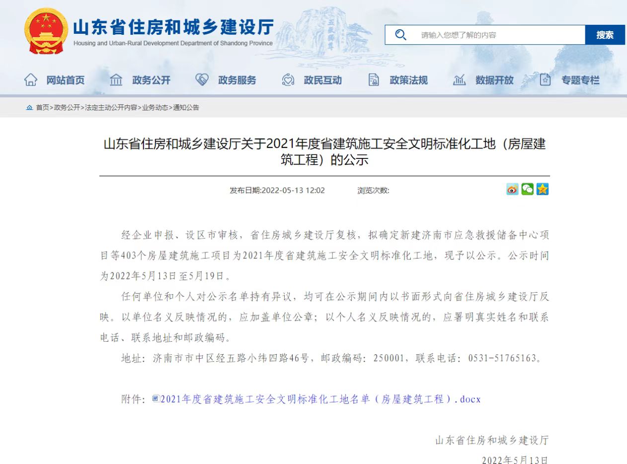 热烈祝贺山东永胜建设集团荣获2021年济宁市安全生产先进单位,其中新体校、市立医院二期、火炬路中学、微山县人民医院、弘儒佳苑等5个在建项目,荣获2021年度省级安全文明标准化工地。